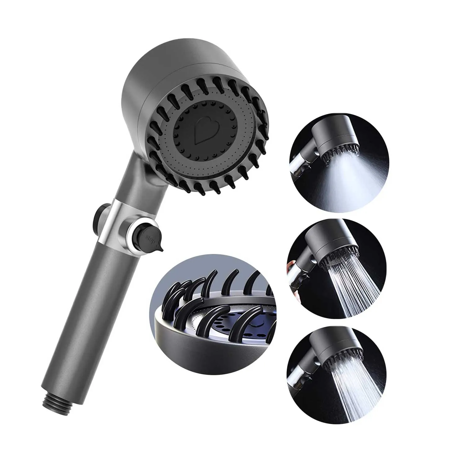 Disfruta de sus 4 modos de agua: lluvia fina, masaje, chorro concentrado y combinación, diseñados para ofrecer relajación profunda y estimular tu cuero cabelludo con sus suaves púas de silicona. 💆♂️